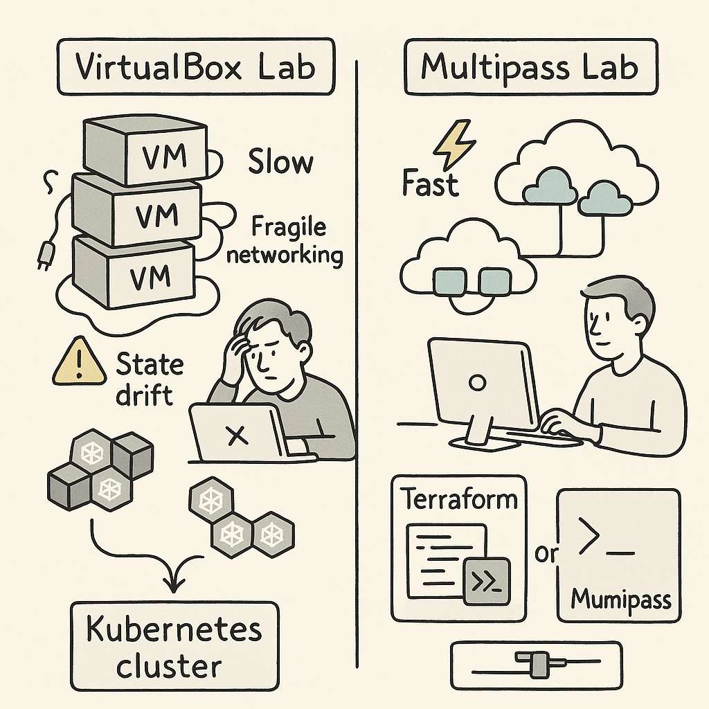 VirtualBox worked, but it pulled me into infrastructure rabbit holes that had nothing to do with the exam. The mental fatigue was real. Multipass removed the noise and gave me room to think. The result was better consistency, better focus, and far more productive study hours.